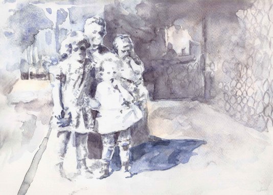 - Uroma, Ursula, Helga, Karl-Heinz, aquarelle sur papier, 29 x 20 cm