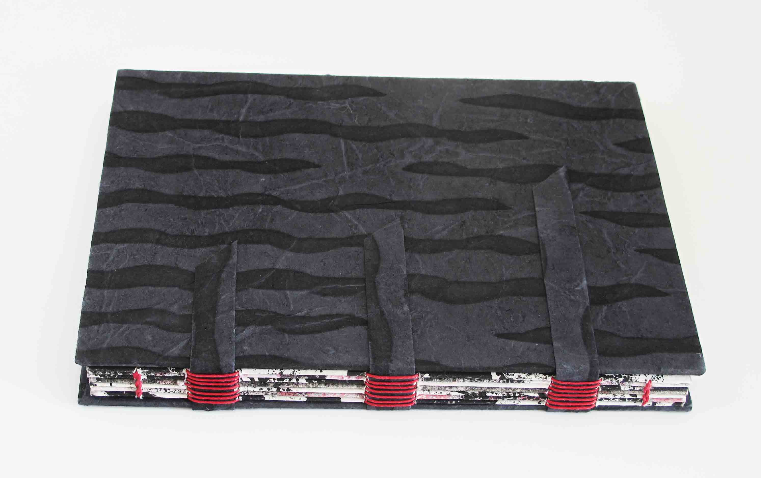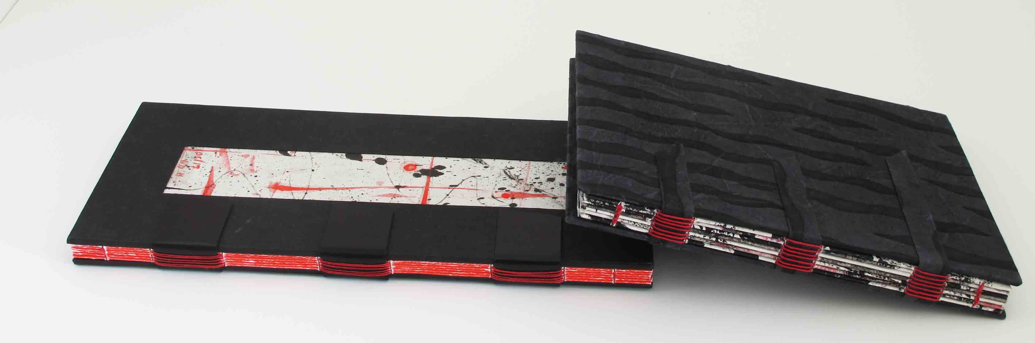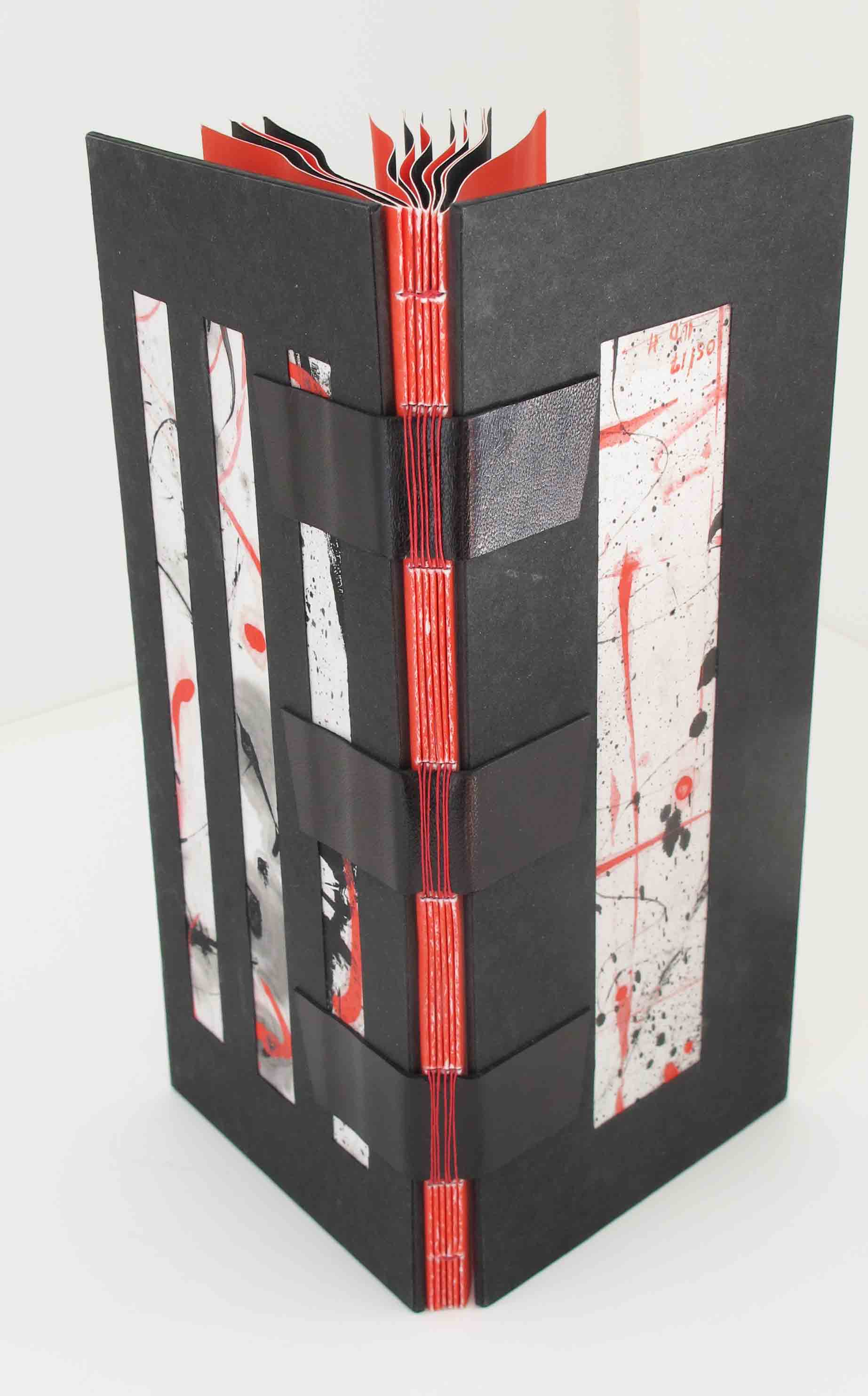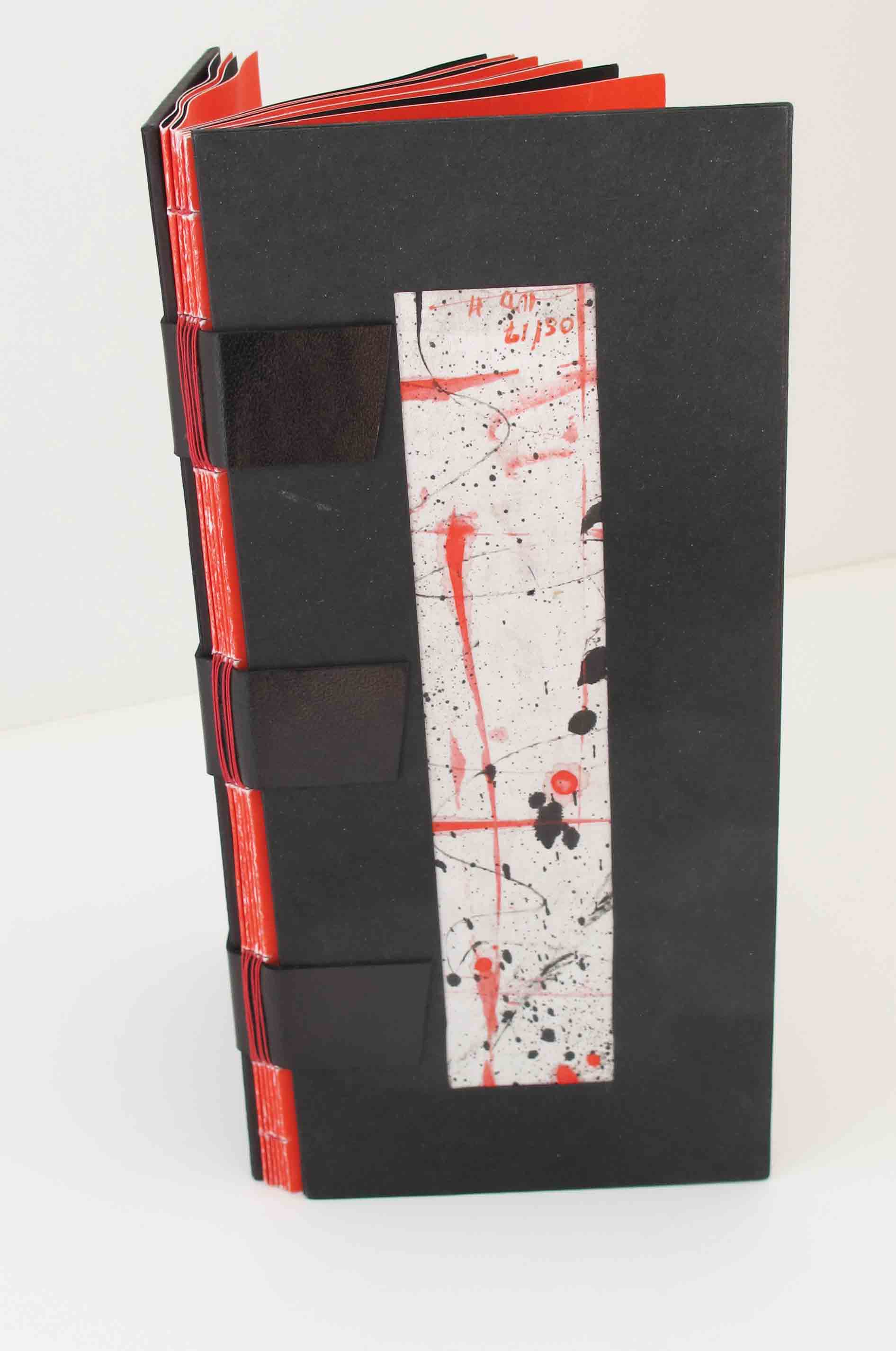 Détail reliure livre rouge et noir